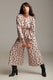 Blusa con cuello mao, alamares en el delantero y fornitura de piculina negra en el bajo, manga con lazada.